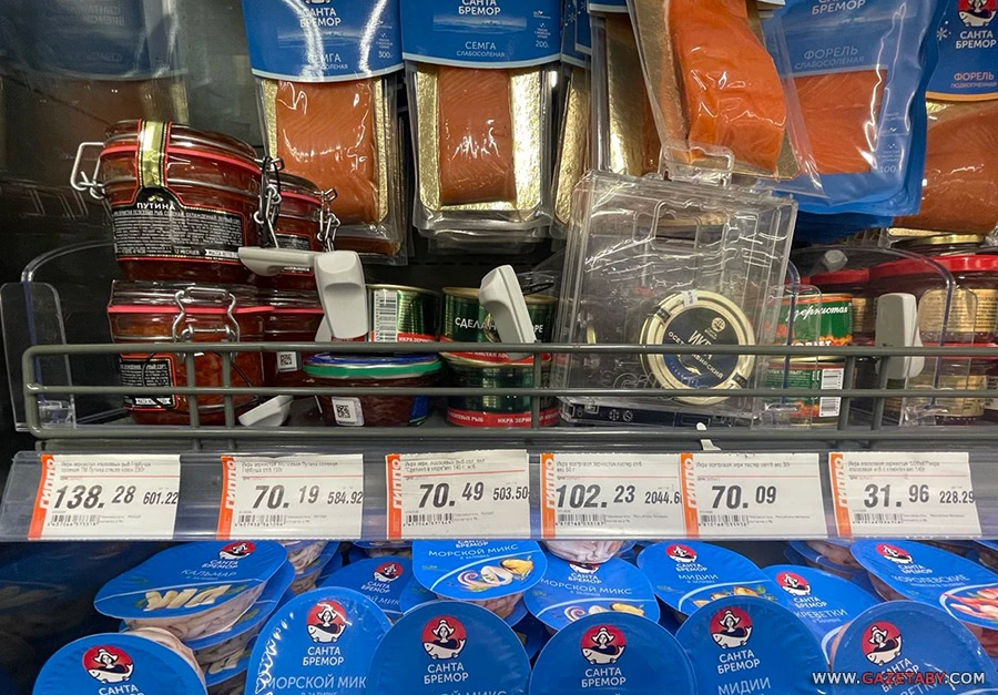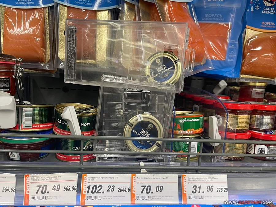 Также в одном из супермаркетов Минска есть красная икра «Путина».