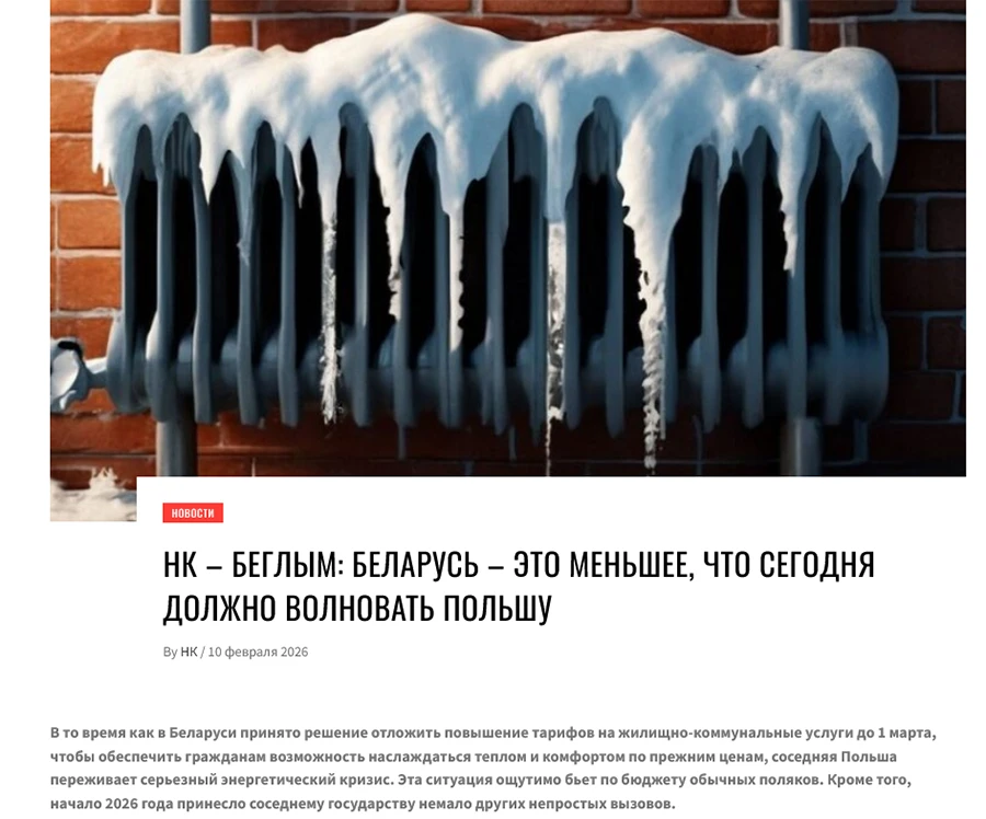 Спустя несколько дней из Каменца последовал ответ под заголовком «НК — беглым: Беларусь — это меньшее, что сегодня должно волновать Польшу». В качестве иллюстрации — замерзшая батарея.